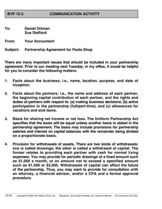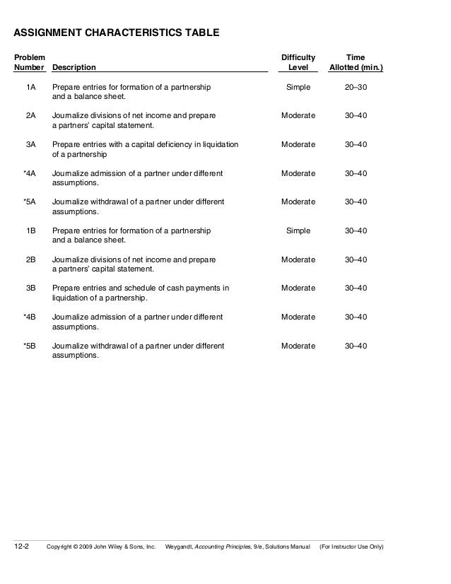 Test bank Accounting 25th Editon Warren Chapter 6-Accounting for Merchandising Businesses Test bank Accounting 25th Editon Warren Chapter 16-Statement of Cash Flows Test bank Accounting 25th Editon Warren Chapter 17-Financial Statement Analysis. CHAPTER 12 Accounting for Partnerships ASSIGNMENT CLASSIFICATION TABLE Study Objectives Questions Brief Exercises Exercises A Problems B Problems 1. Horngren Chapter 12 Partnerships Objective 12-1 1 Mutual agency in a partnership means that partnership decisions must be made mutually by both partners.